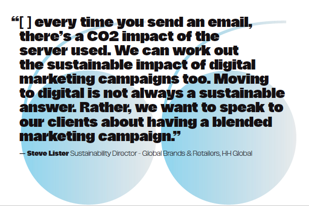 Secondly, the spotlight is on sustainability, as corporate brands put pressure on their print and signage partners to offer more friendly options for out-of-home, event and point of sale graphics and other types of visual communication. Automation plays a major role in reducing waste, but print buyers are also expected to have more consideration for the technologies and inks being used to produce their products, and the materials they’re made out of. Working towards their goals of sustainability, HH Global, leader in tech-enabled creative production and procurement and global leader in sustainability capabilities, have created its own proprietary software that measures CO2. Everything passes through what’s called its sustainability hub, which has externally verified data points from environmental databases like ecoinvent.